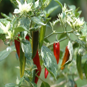 The Fish Hot pepper is a peculiar pepper that is thought to have originated from either Africa or the Caribbean. The plant produces 3-4 cm (1½") long by 1.3 cm (½") wide, medium hot peppers...